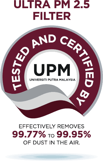 Our filter removes very fine inhalable particles with diameters that are generally 2.5 micrometres (PM2.5) and smaller (as small as 0.3 microns).